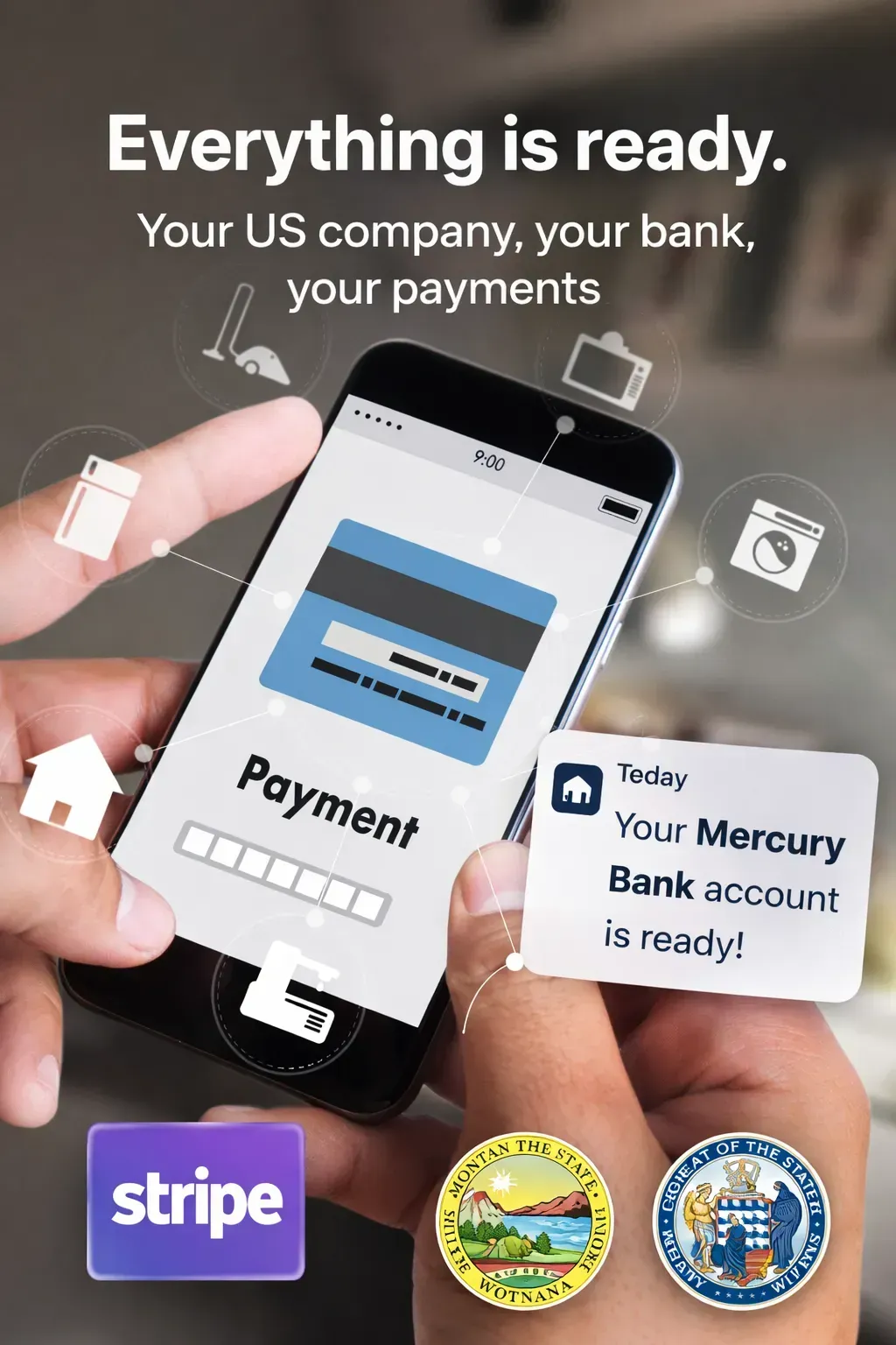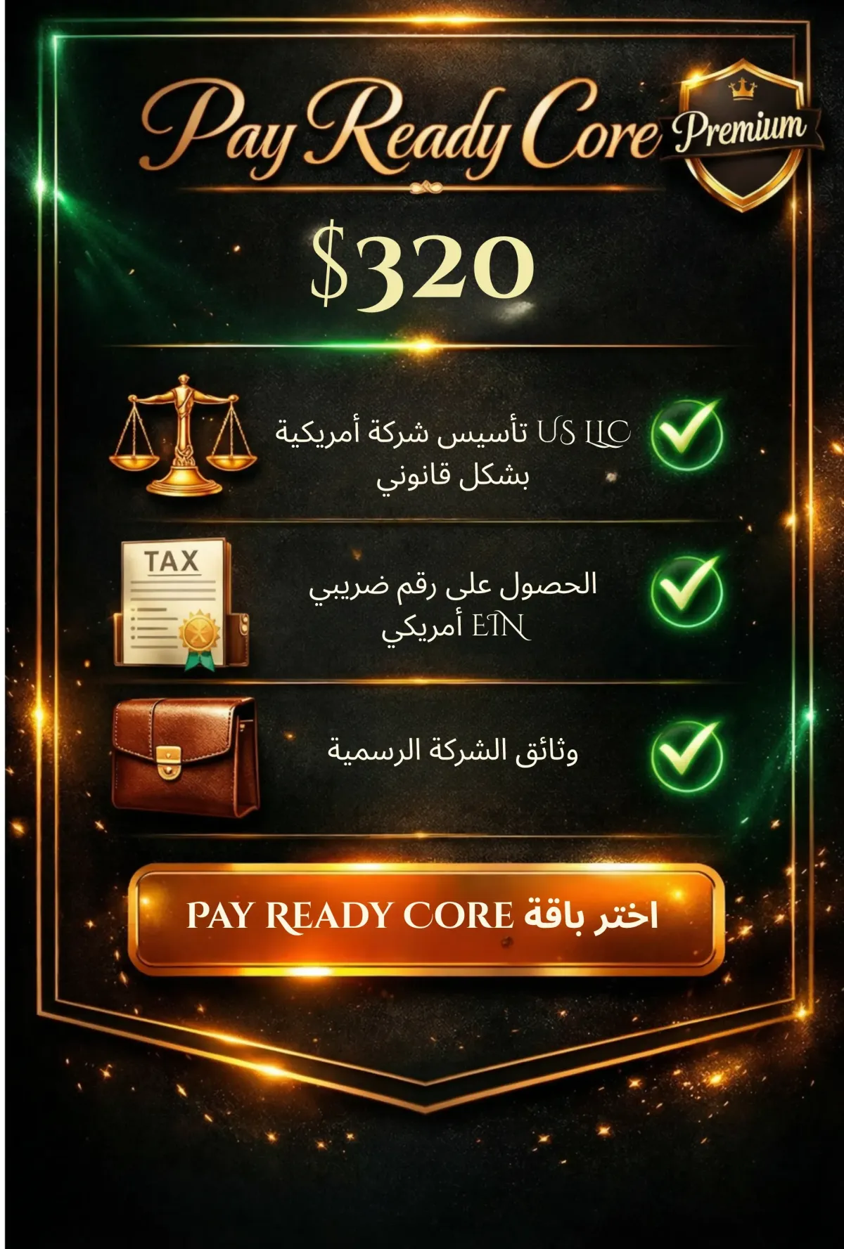 نقوم بتأسيس شركتك وهيكلتها بطريقة متوافقة مع متطلبات Stripe وPayPal.
