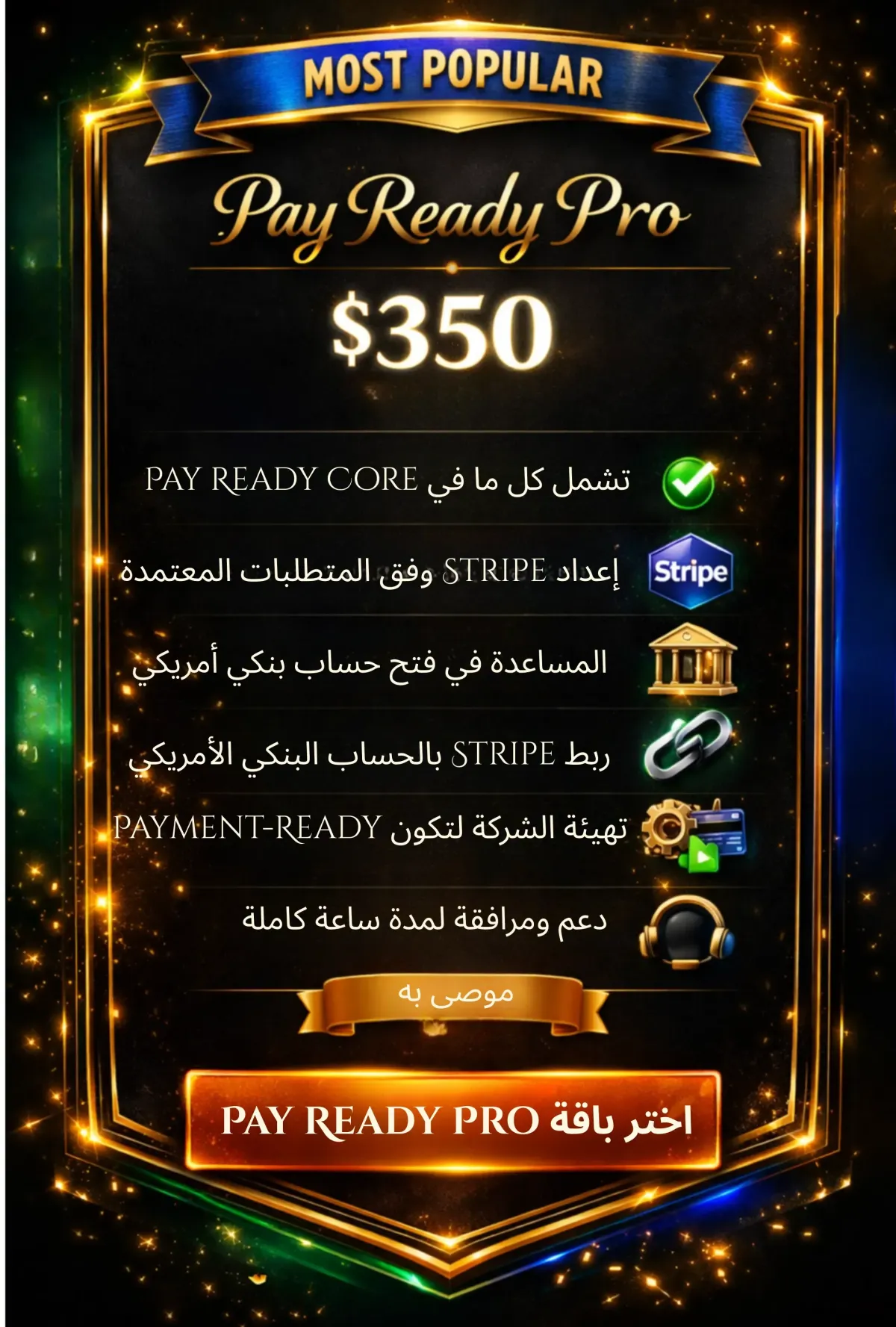 ✔️ هيكل جاهز للعمل مع Stripe وPayPal والبنوك الأمريكية